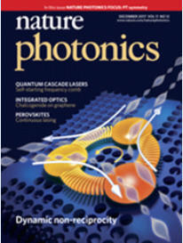 Cover of Nature Photonics with D. Sounas, A. Alù, “Non- Reciprocal Photonics Based on Time Modulation,”